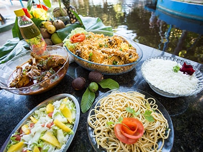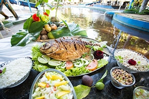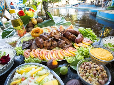 Os peixes dos rios amazônicos são famosos mundialmente por seu sabor. Nossa cozinha oferece as delícias dos rios, fritas em azeite de coco 100% orgânico ou grelhados.
